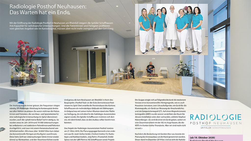 Das Magazin «Radius» der Spitäler Schaffhausen erscheint am 14. Oktober 2020 – zur Eröffnung der Radiologie Posthof Neuhausen – als Beilage der Schaffhauser Nachrichten